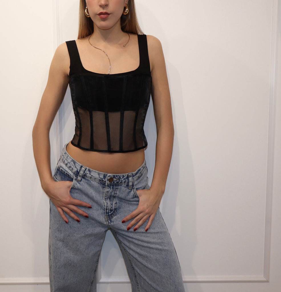 Spedizione gratuita per ordini superiori ai 150 euroRaffinato e seducente, questo corpetto è il perfetto equilibrio tra eleganza e modernità. Caratterizzato da una struttura steccata che scolpisce delicatamente la silhouette, è impreziosito da trasparenze strategiche per un effetto sofisticato. I profili delineano le linee del design, mentre le spalline larghe aggiungono comfort e supporto. La chiusura posteriore a corsetto regolabile consente di adattarlo perfettamente al corpo per un fit personalizzato.