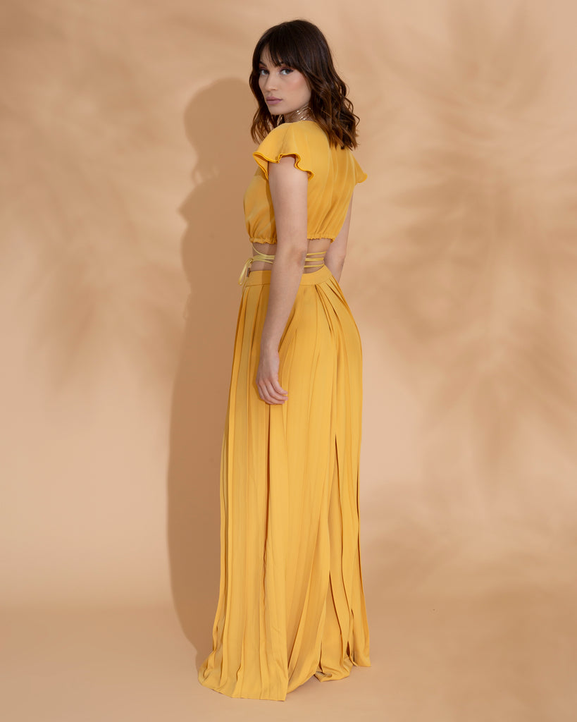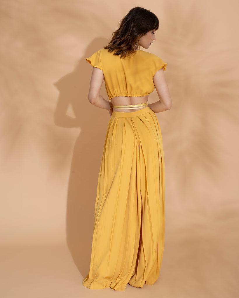 Spedizione gratuita per ordini superiori ai 150 euroAmpio pantagonna plissettato in cady a vita alta.