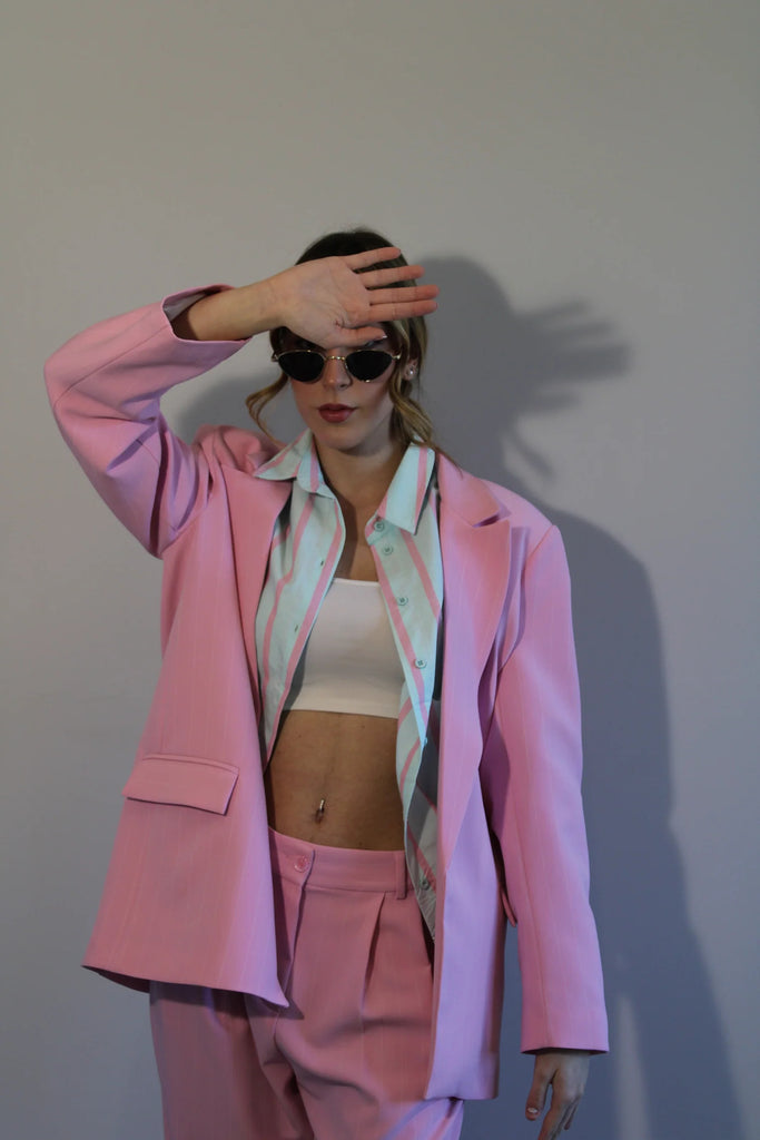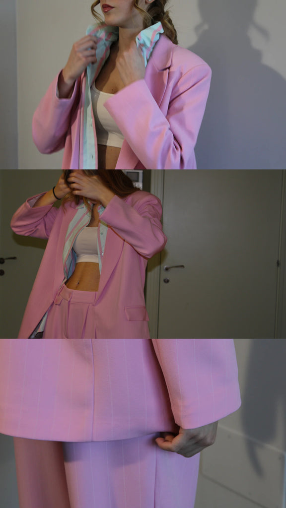 BOSTON - Giacca over gessata rosa